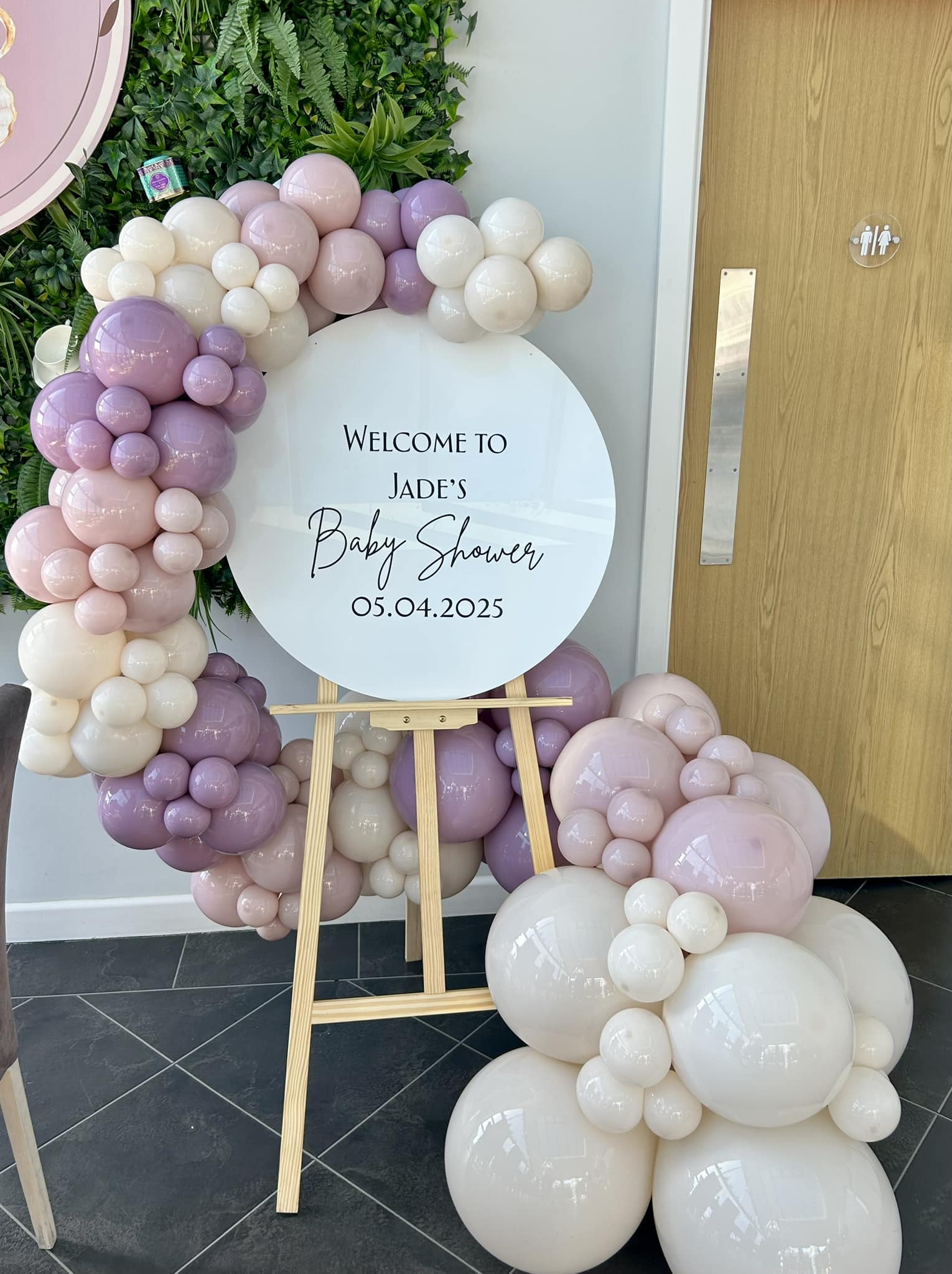 Personalised board with optional balloon garland.